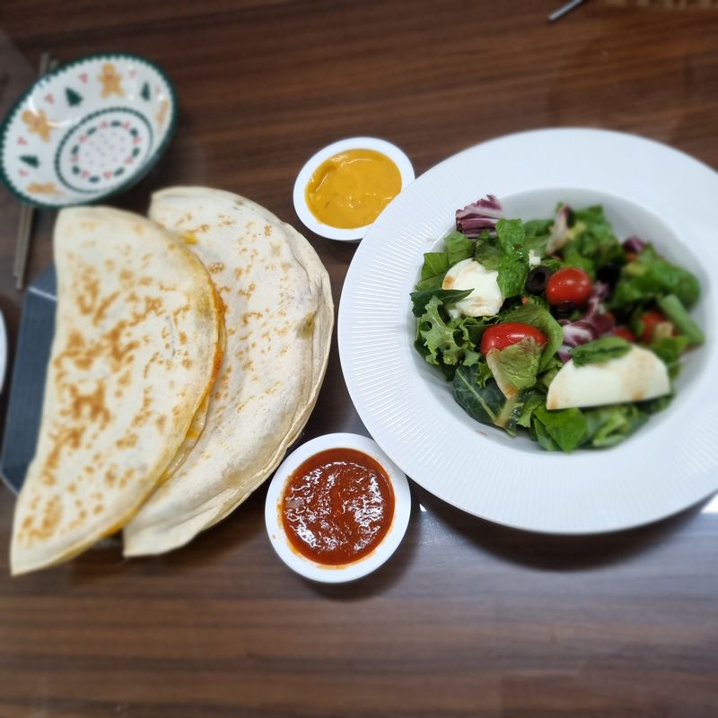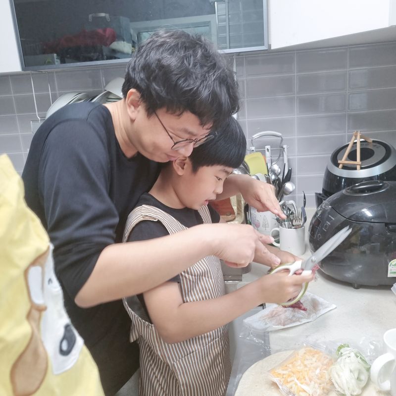아빠와 주말에 불고기 퀘사디아 만들어먹었어요~평소에 생소한음식은 잘 먹지 않는데 아빠와함께면 엄청 잘 먹어요~~!! 아빠와 함께라 엄청즐거워했어요~♡ 고기도 직접 볶아보고 야채도 볶고 치즈올리고 기다리면 끝~~!!!! 맛있는건 덤 👍