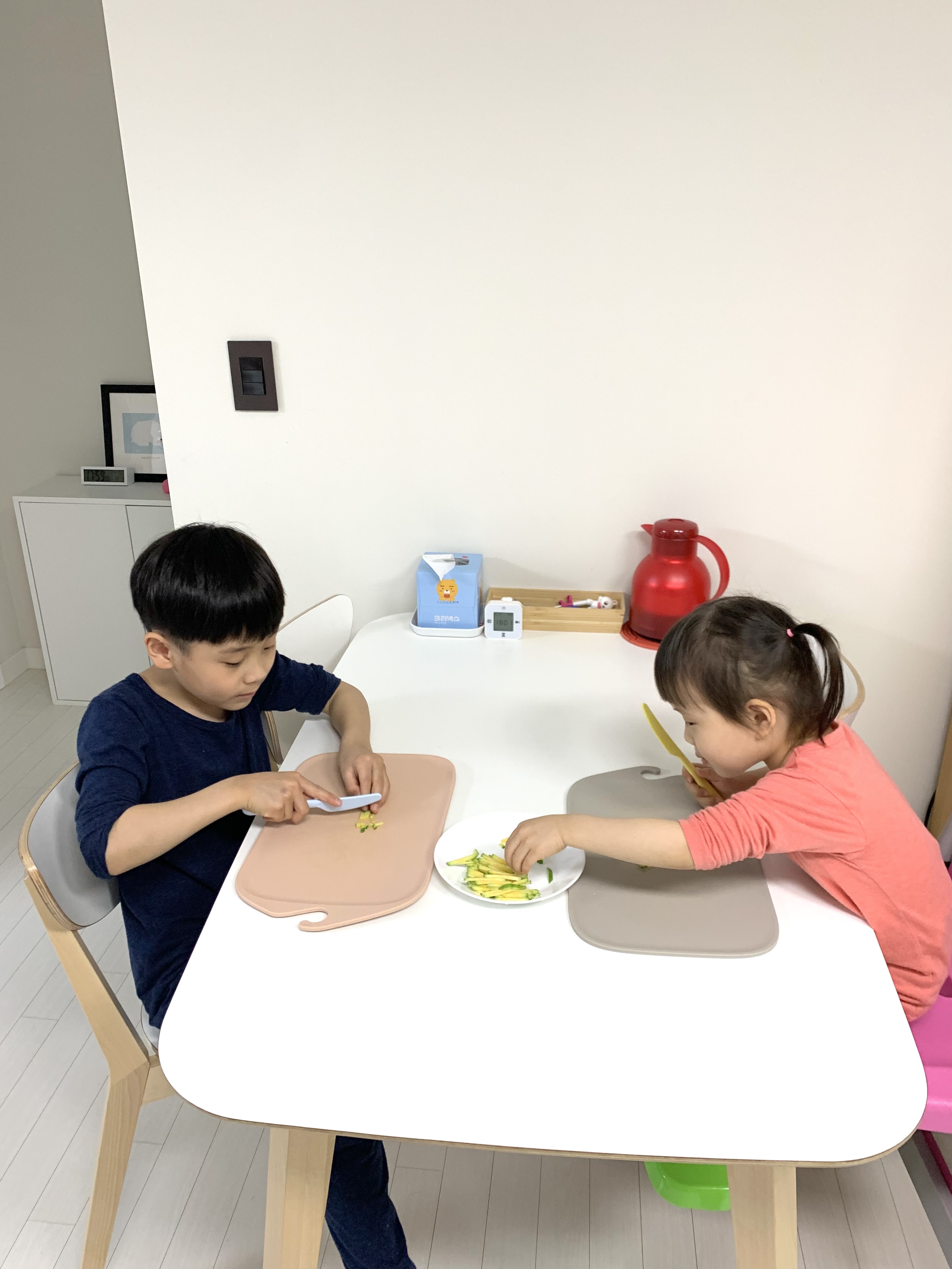그럴땐 엄마가 허둥대며 고군분투하며 아이들에게 기다려 달라고 하기보다, 같이 요리하면 즐겁게 시간을 기다리고, 식사도 더 잘하는거 같아요!