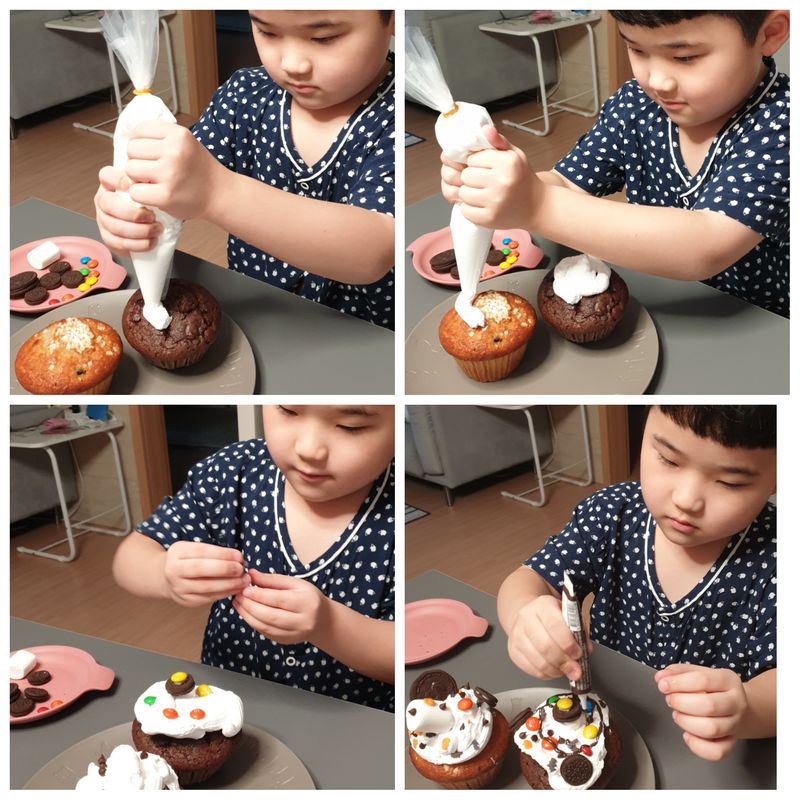 보조 엄마가 준비한 직접 구운 머핀에 빙글빙글 하얀 구름 같은 생크림♡