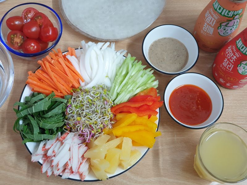 다이어트 하고 있는 언니랑 냉장고에 있는 재료들 모아모아서 사부작사부작 월남쌈을 만들어 보았어요~ 집에 있는 좋아하는 야채들과 라이스페이퍼만 있으면 오케이! 새미네부엌 흑임자참깨딥소스와 청양초칠리딥소스는 샤브샤브 뿐만 아니라 월남쌈과 함께해도 맛있답니다!