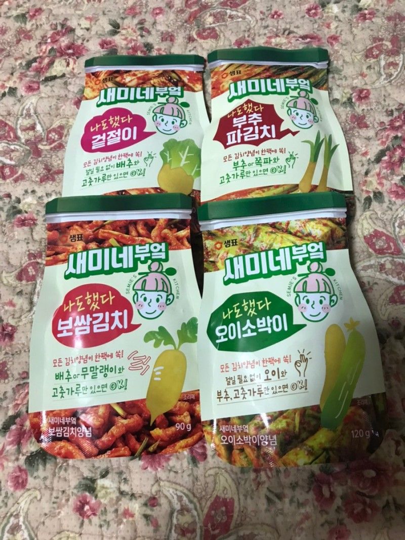 아이랑 손 쉽게 김치 담글수 있어서 너무 좋아요!! 김치 잘 안 먹는 아이들도! 자기가 만들었다는거. 하나에 엄마 아빠 보고 하나 먹어봐라고 내가 만들었다고 자랑하더라구요 ㅋㅋ