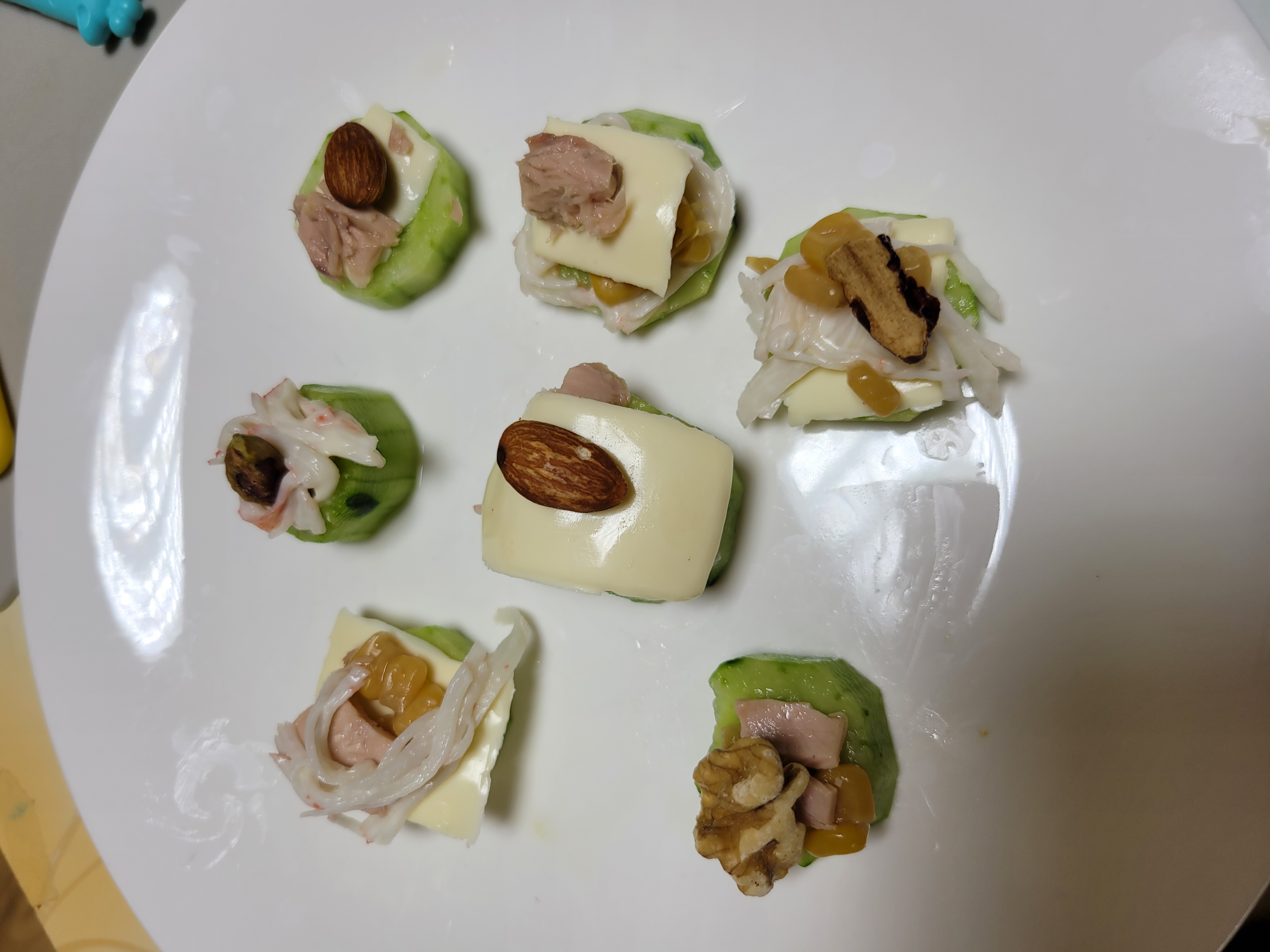 평소 잘 먹지 않던 견과류도 오이까나페로 만드니 너무 잘 먹네요~^^