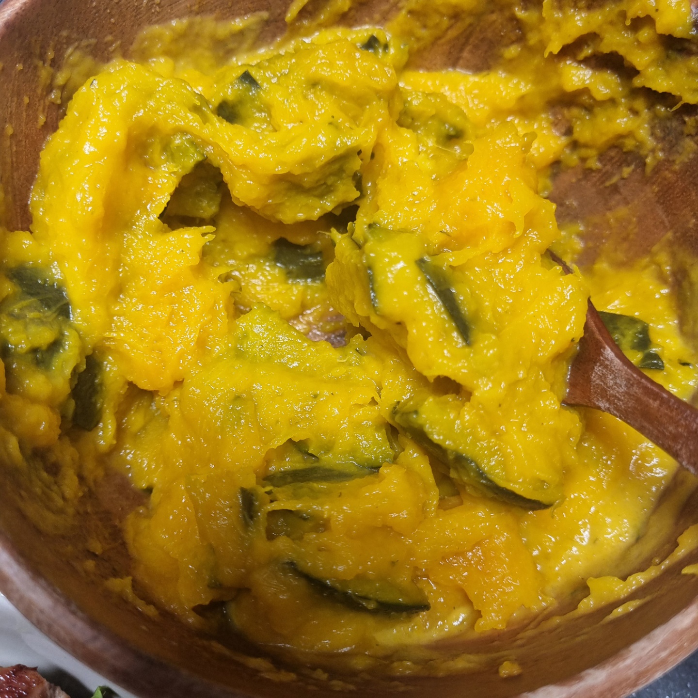2) 단호박을 푹~ 쪄서 으깬다