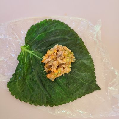 참치강된장 넣은 동글동글 깻잎쌈밥