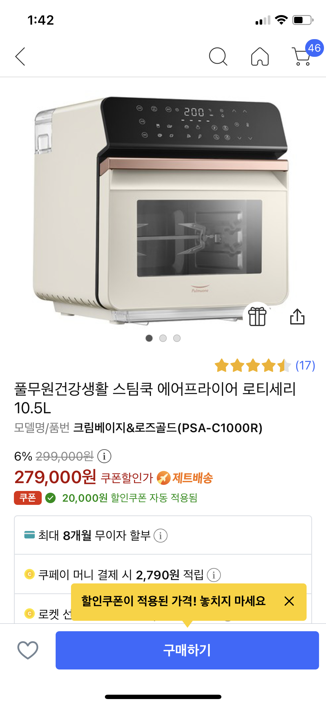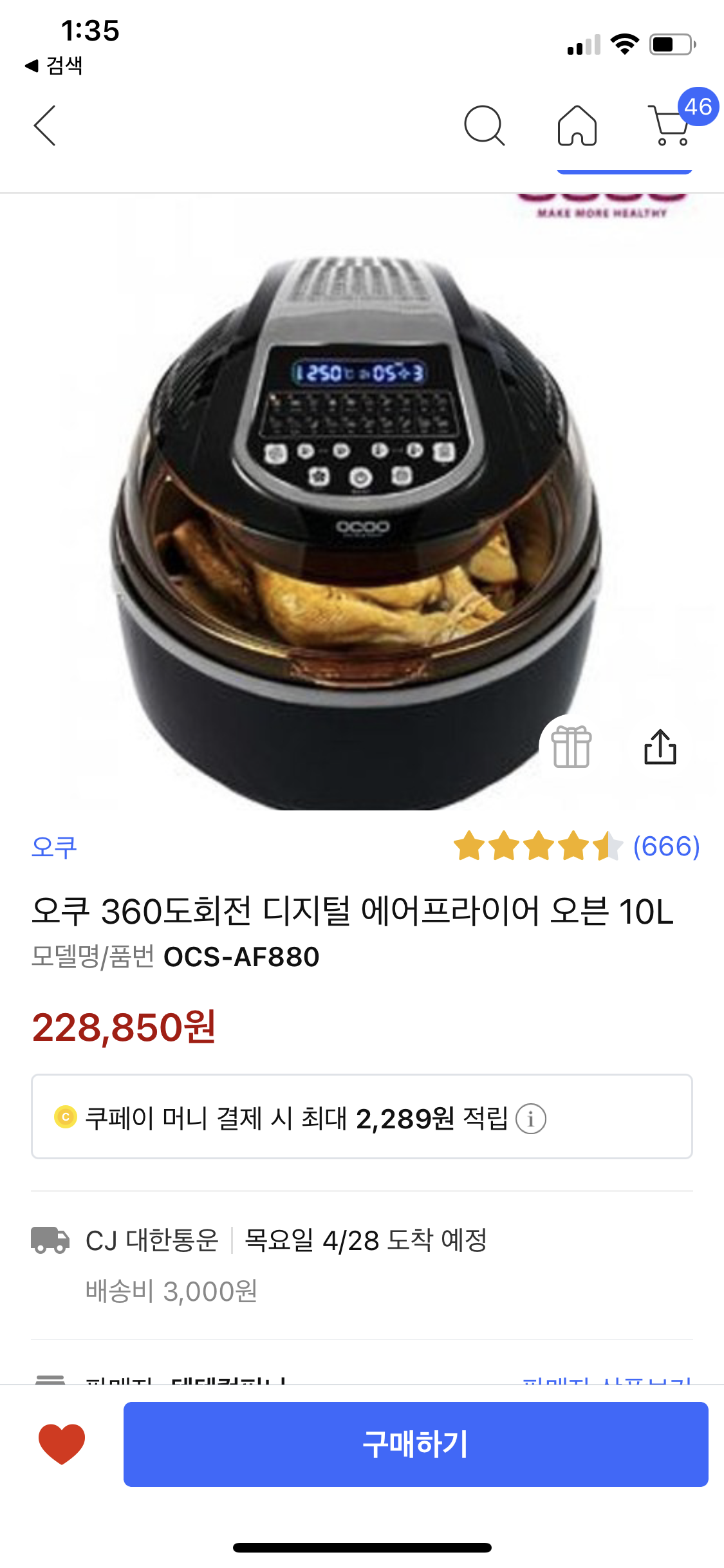360도 에어프라이어가 기능은 짱인데, 디자인도 안쁜데 무식하게 커서 둘데가 마땅치 않아 별로라는 분도 있고