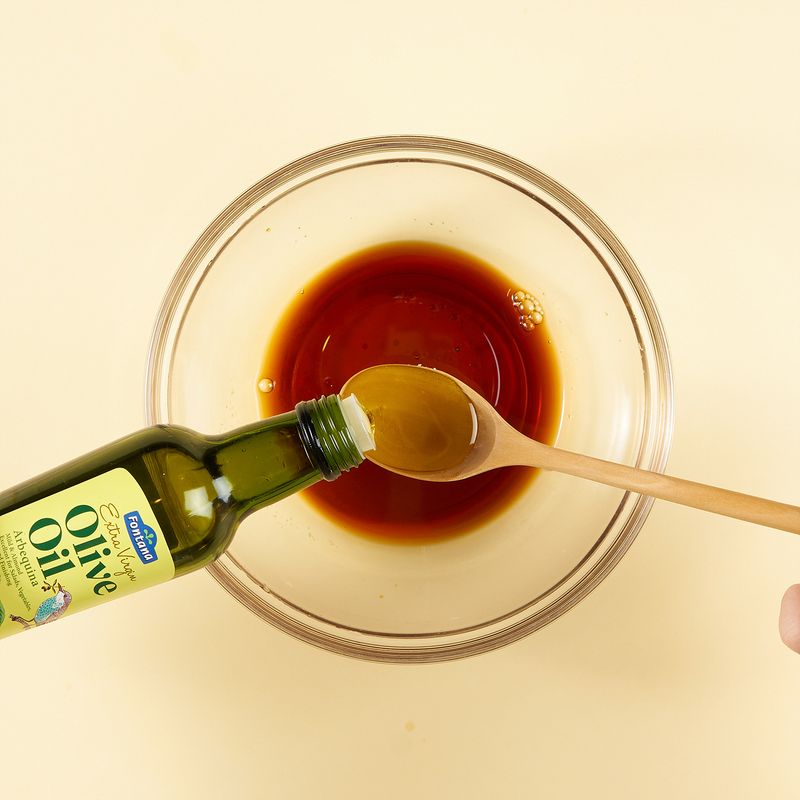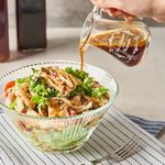 고급스러운 오리엔탈 드레싱 풍미를 만들고 싶다면, 재료를 추가해 섞어주세요. : 다진 양파 1스푼 (20g), 깨 1스푼 (5g), 참기름 1스푼 (10g), 홀그레인 머스타드 1/3스푼 (3g)
