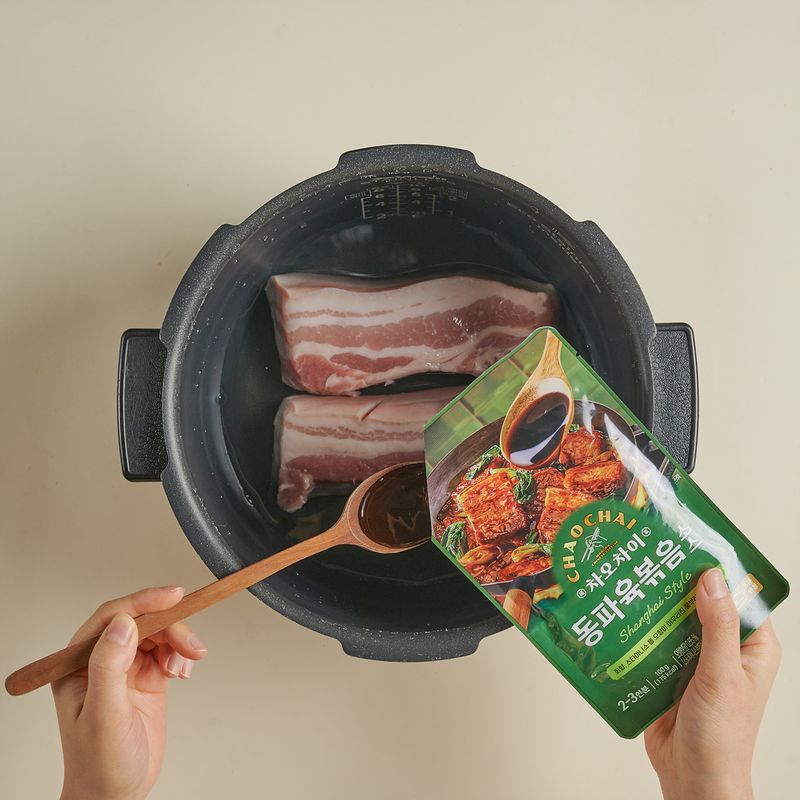 동파육볶음소스 하나만 넣어 완성하세요.