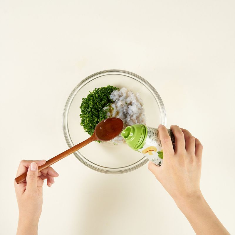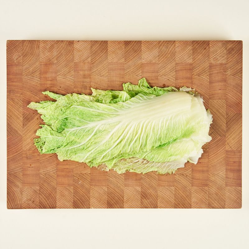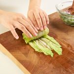 간이 잘 배인 배추 위에 잘 다진 새우살을 올려 말면 완성!