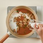 소스에서 바지락만 건져내어 살을 분리해 팬에 다시 넣어주고, 생크림을 부어 센불에서 다시 한번 한소끔 끓여주면 소스 완성!