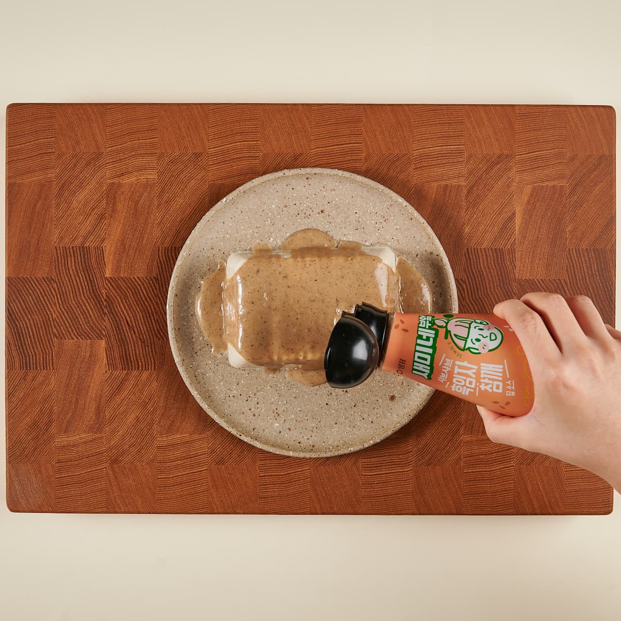 연두부 위에 새미네부엌 흑임자 참깨 딥소스(4스푼)를 뿌려 주면 완성!