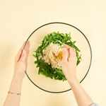 볼에 부추, 분량의 생콩가루, 연두진 1스푼을 넣어 버무려 주세요.