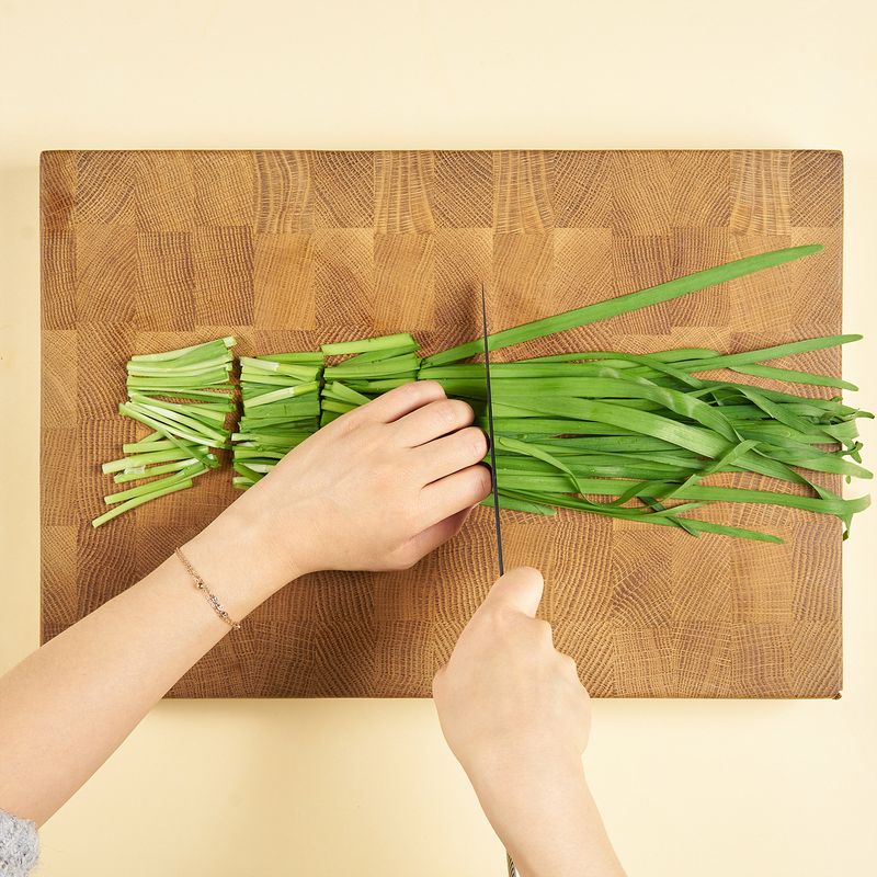 부추는 세척 후, 물기를 제거해 4cm 길이로 썰어 주세요.
