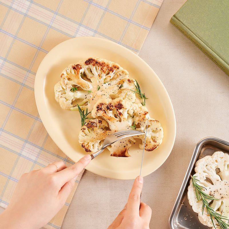 콜리플라워는 흐르는 물에 깨끗이 씻은 후, 2cm 두께로 모양을 살려 잘라주세요.