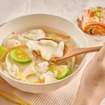 센불로 끓여 육수가 끓어오르면 수제비를 넣은 후, 중불로 줄여 약 3분간 끓여 주세요. 그 위에 골고루 푼 달걀물을 넣고 휘저어 30초간 끓여주면 완성!