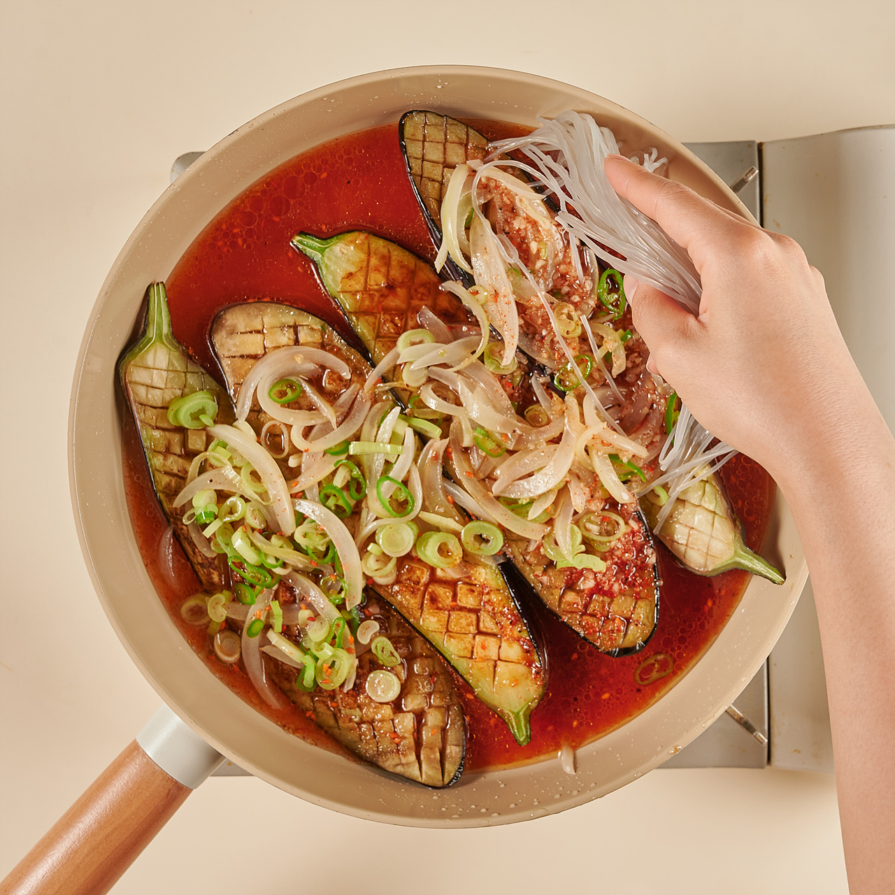 감칠맛 있는 중국풍 소스에 가지와 당면 조합