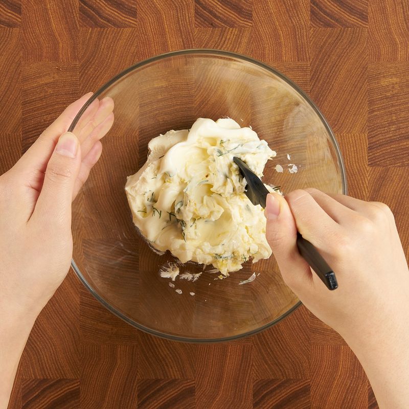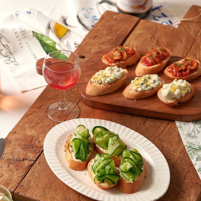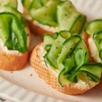 바삭한 바게트 위 딜마요크림치즈와 오이의 조합