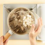 쫄깃한 버섯과 탱글한 조랭이 떡 넣어