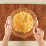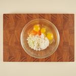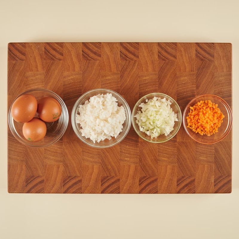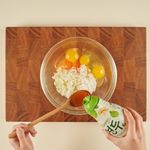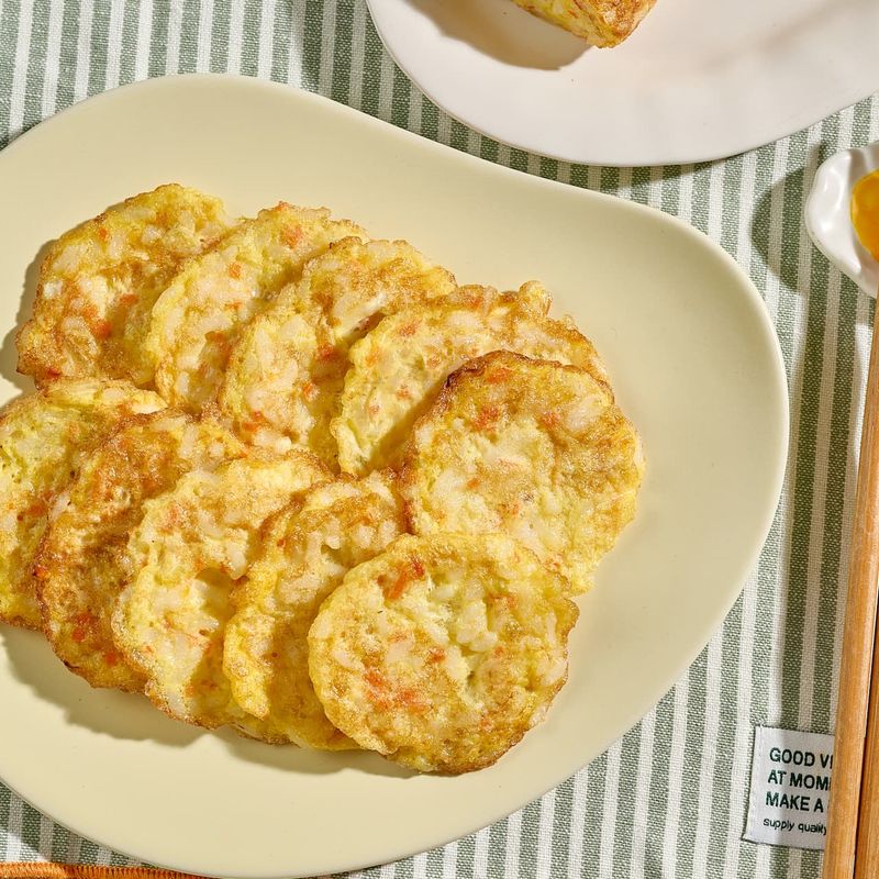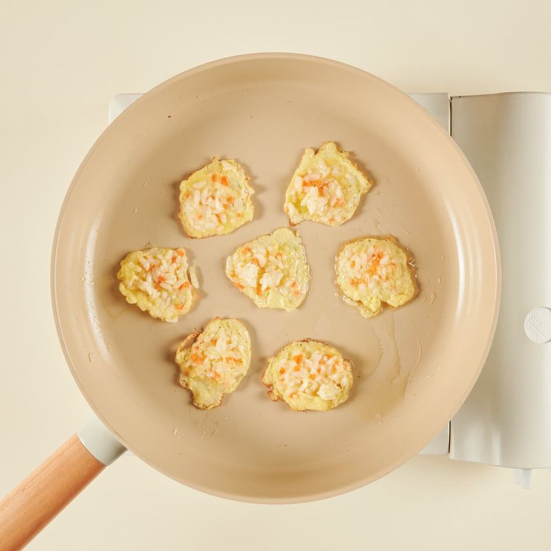 계란물에 냉털채소, 밥 넣어 한번에 부쳐봐요.