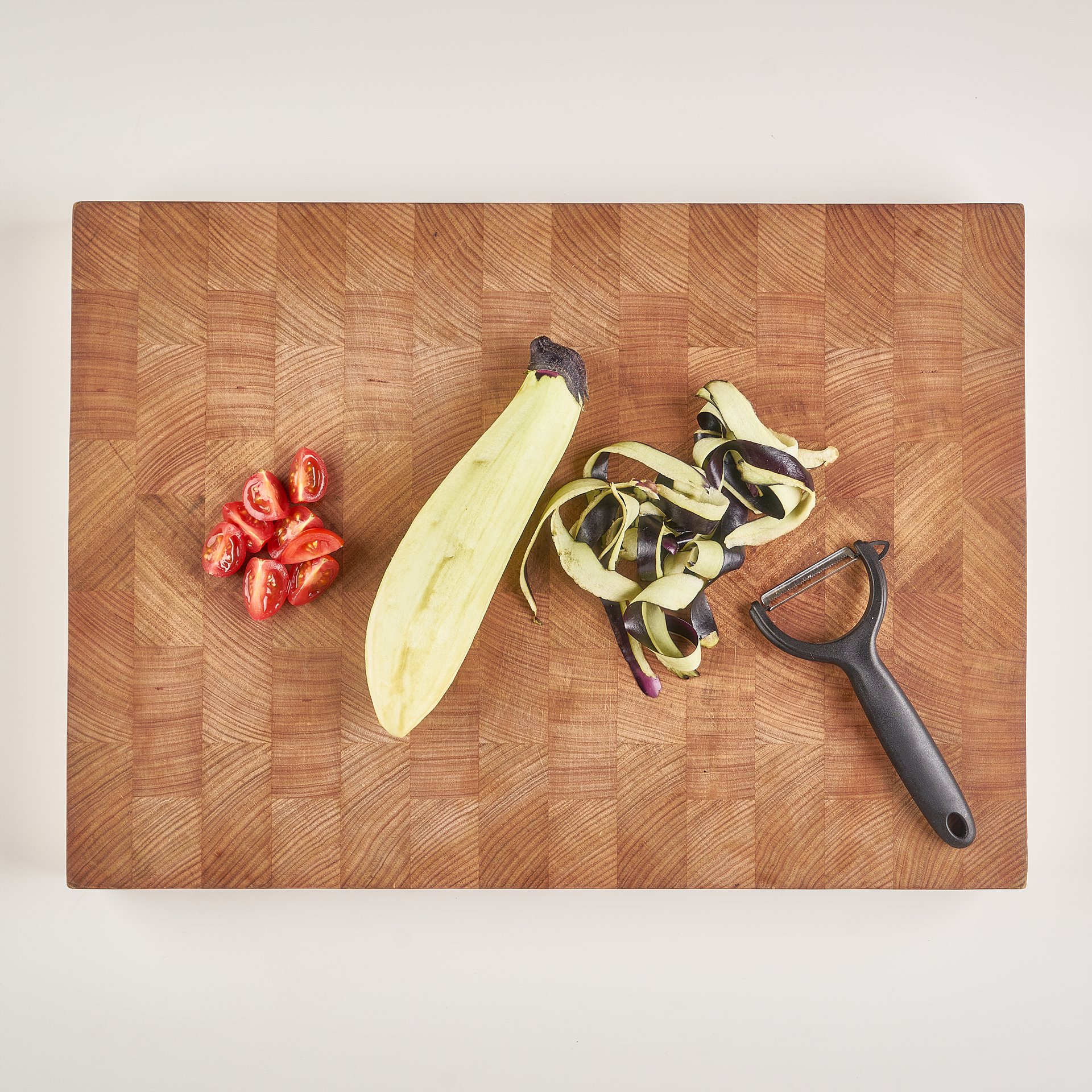 가지는 필러로 껍질을 얇게 벗겨주고, 가지 껍질은 잘게 잘라 준비해주세요. 방울토마토는 4등분으로 썰어 준비해주세요.