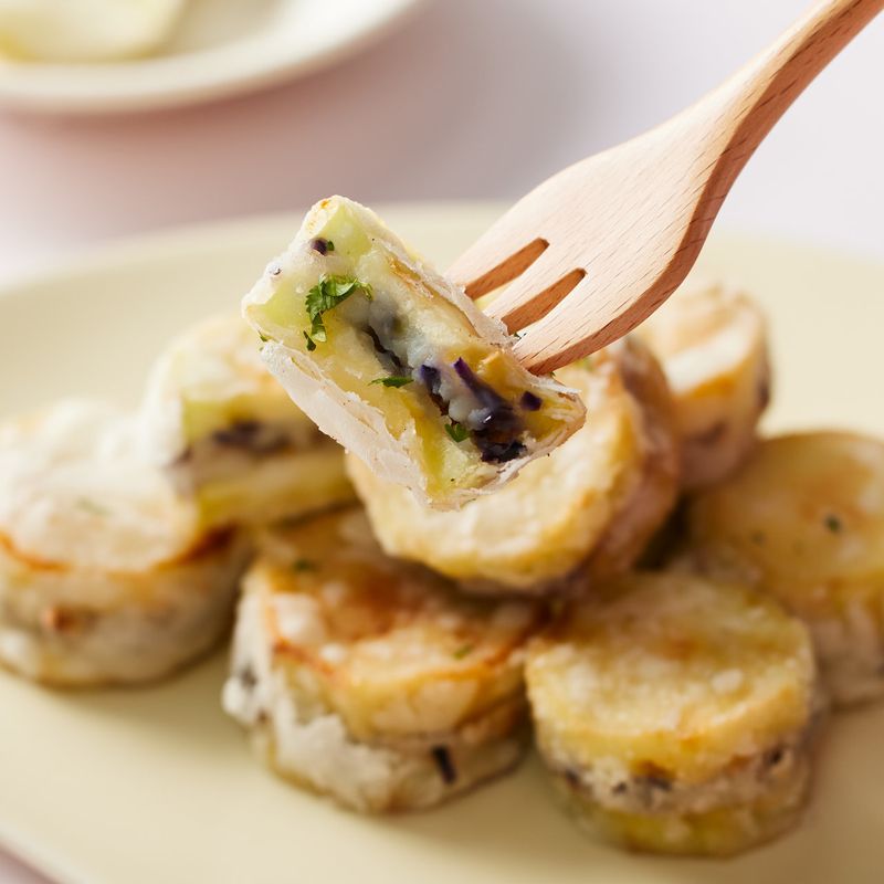 Step 5. 가지에 감자소 넣고, 멘보샤 만들기