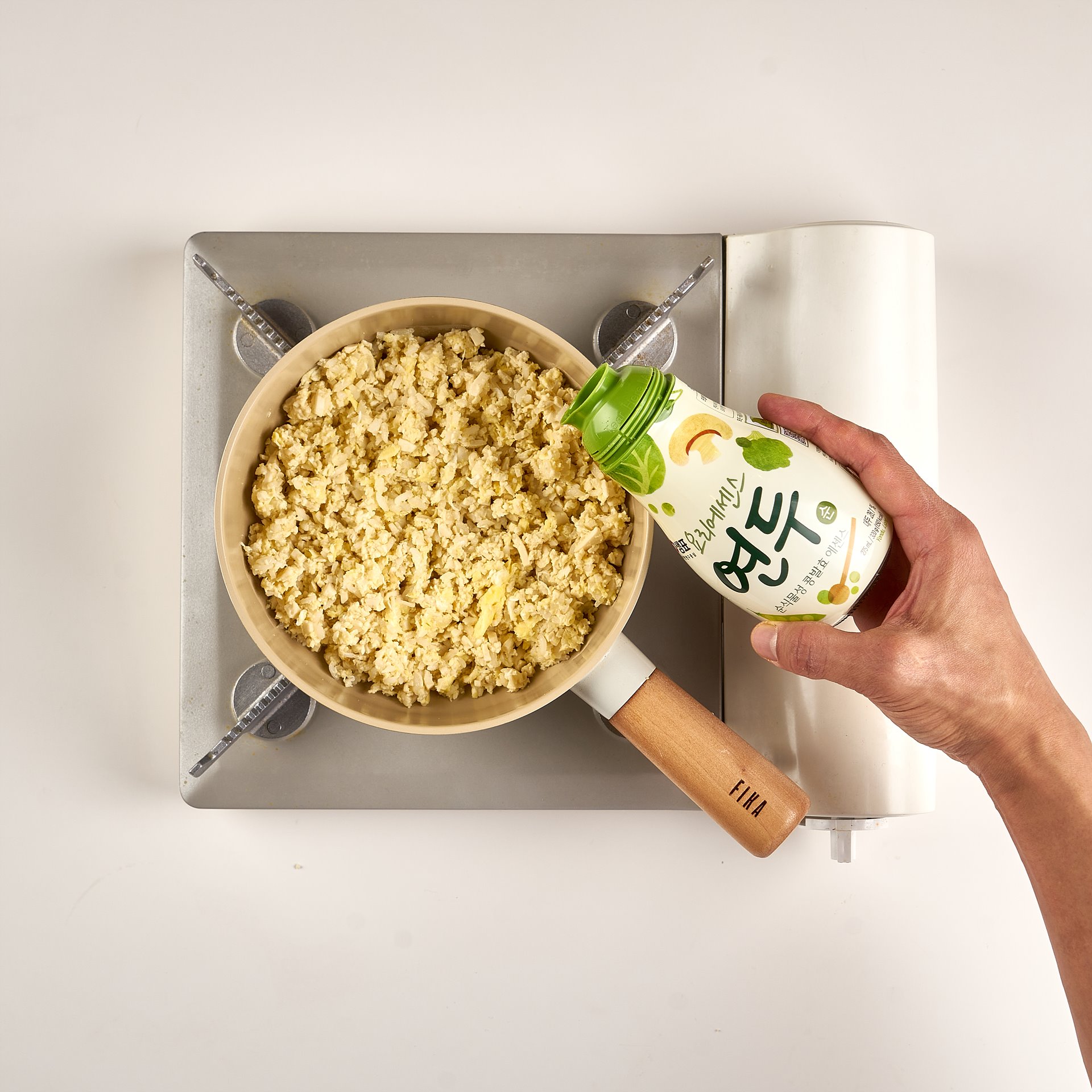 으깬 두부를 볶다가 밥 크게 한 술, 달걀 넣고 볶아주면 끝!