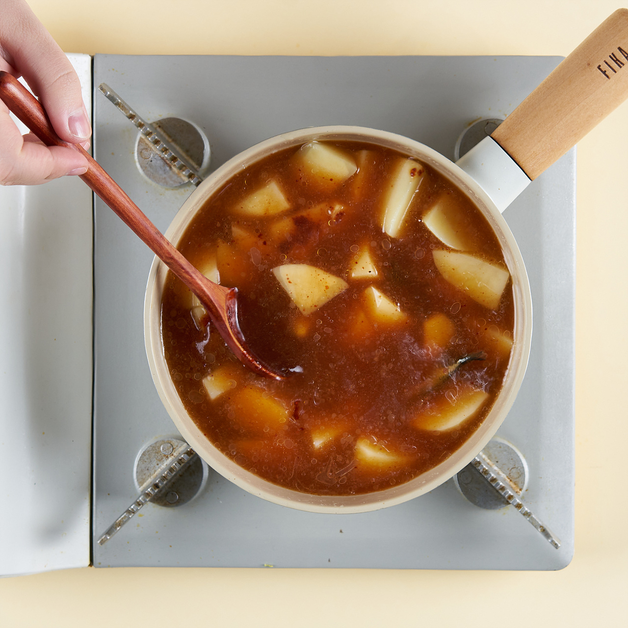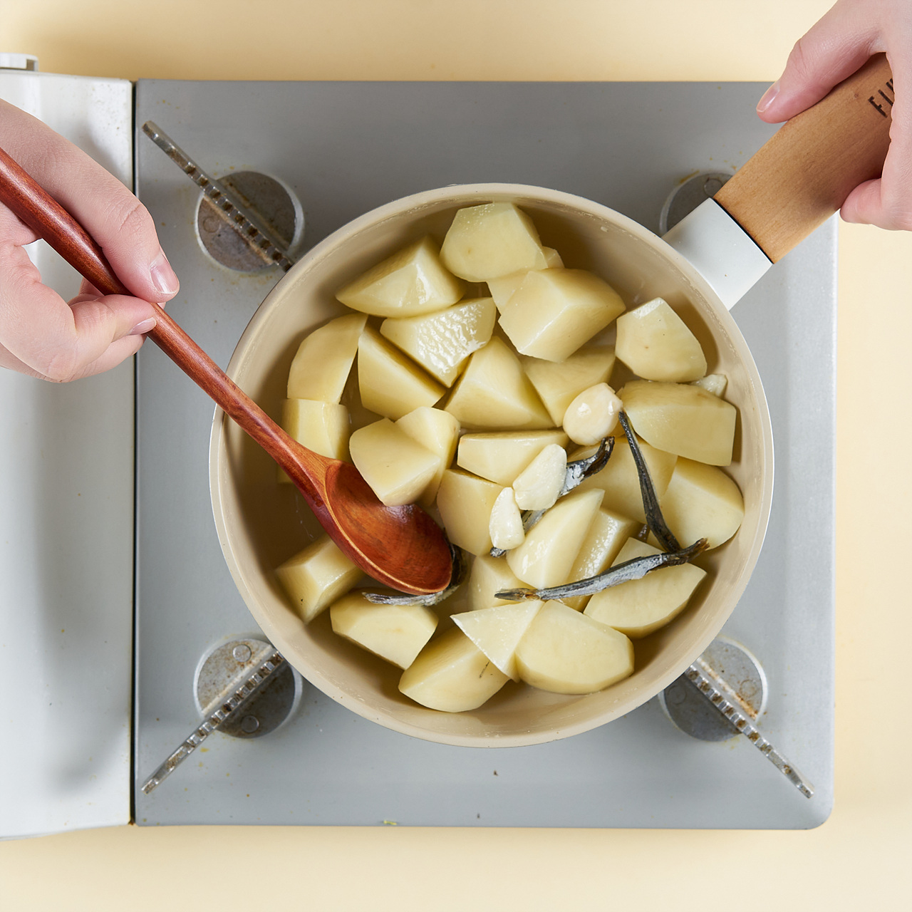 3. 감자 조림을 할 때, 주걱으로 재료를 자주 뒤적이면 감자가 부서질 수 있으니 주의해 주세요!​