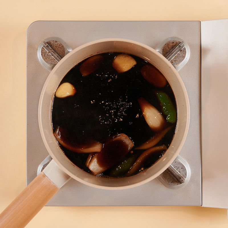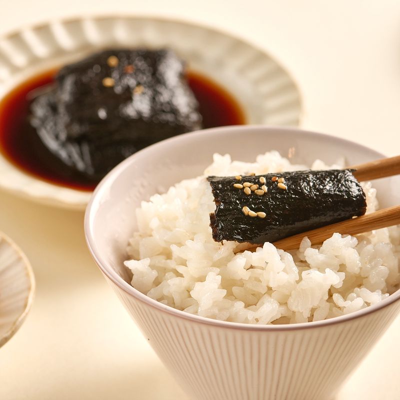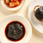 김을 겹겹이 쌓고 간장물에 담가
