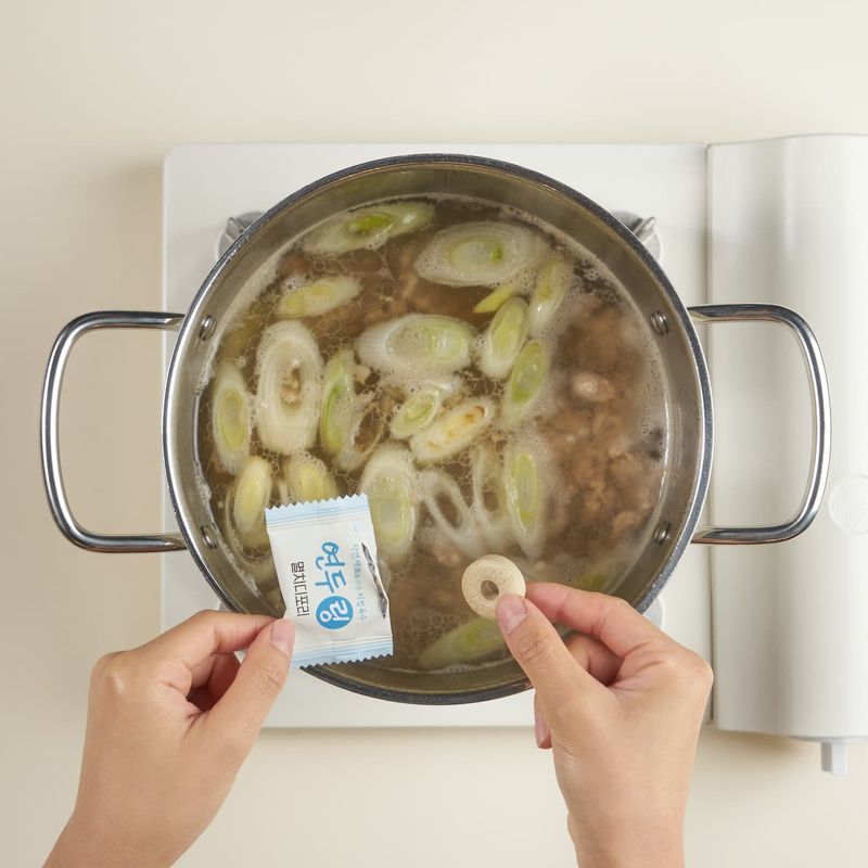 냄비에 물과 양념(고추장, 연두순, 연두링, 다진 마늘)을 넣고 센불에 끓여주세요.