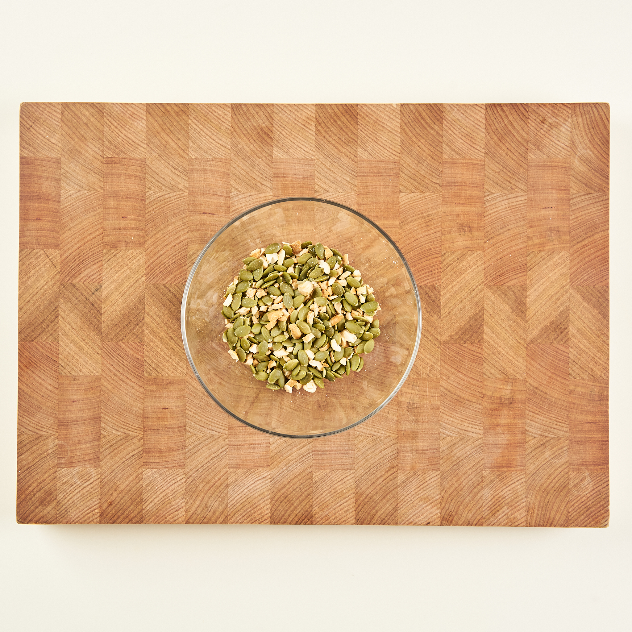볼에 곱게 부순 호박씨와 캐슈넛, 꿀과 계피가루를 모두 넣고 섞어주세요.