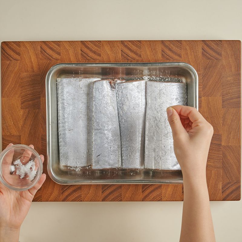 - 두께가 있는 두꺼운 갈치의 경우, 안까지 골고루 익을 수 있도록 팬을 기울여 기름에 충분히 잠길 수 있도록 해주세요.