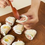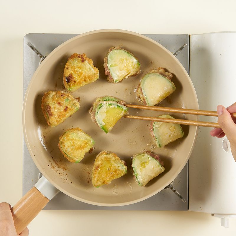 최적 비율의 고기반죽에 애호박 말아 구워주면 완성!