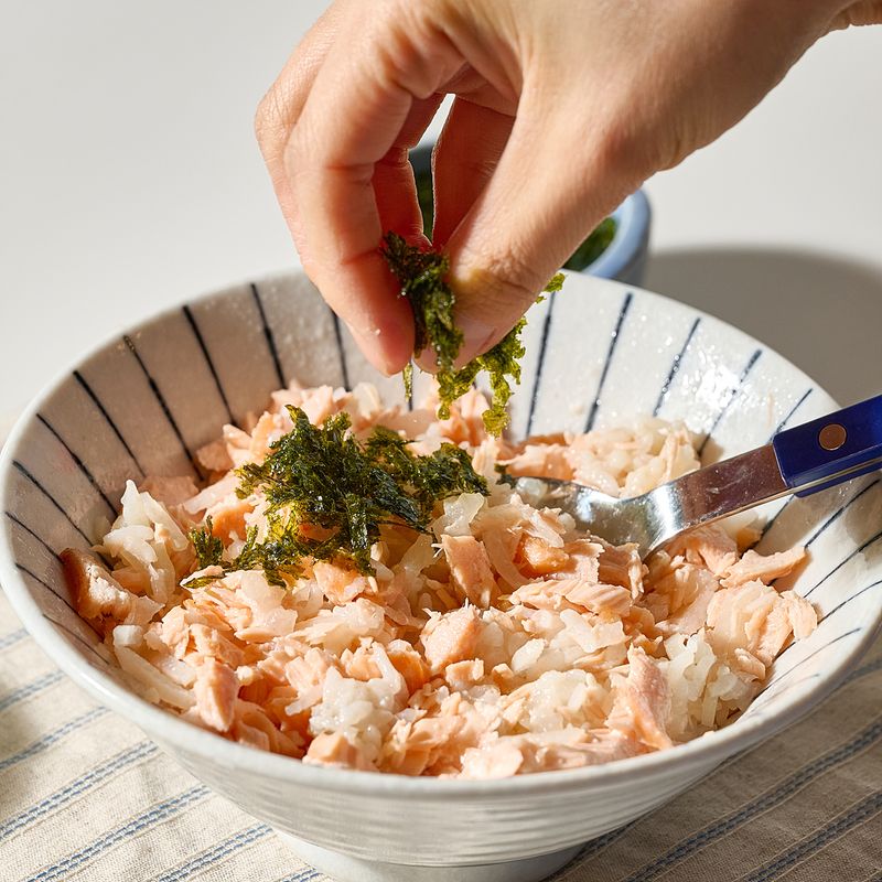 채소와 연어를 더해 든든하게 건강을 채워봐요.