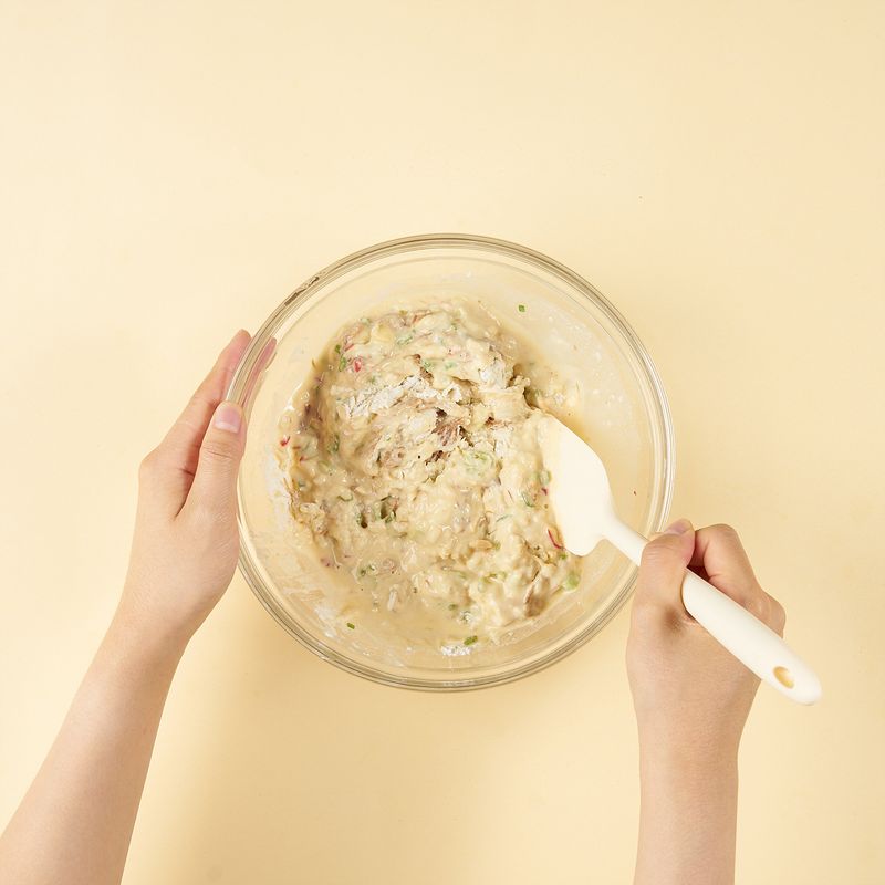 장조림 잘게 찢어 부침가루와 섞으면