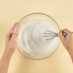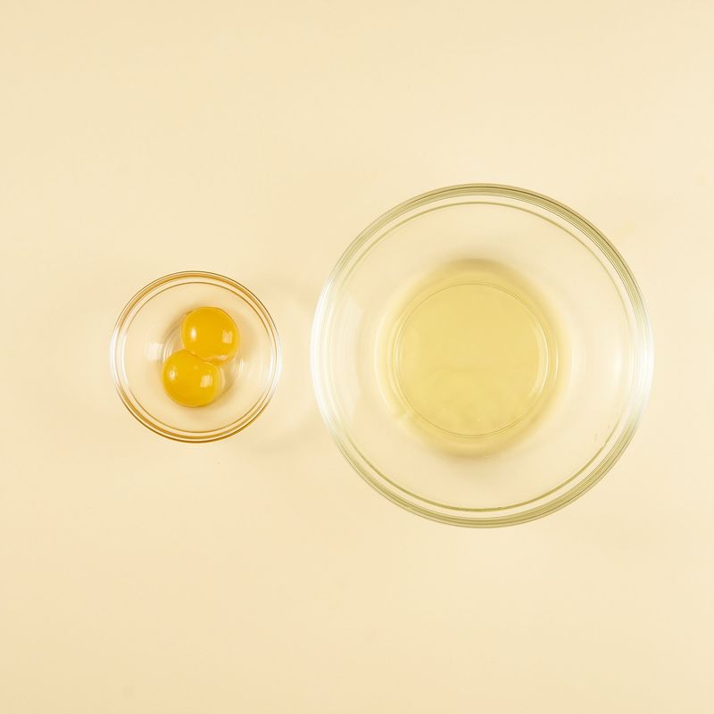 달걀은 흰자와 노른자를 분리하여 각 볼에 담아 준 후, 흰자는 휘퍼를 이용해 빠르게 저어 머랭을 만들어 주세요.