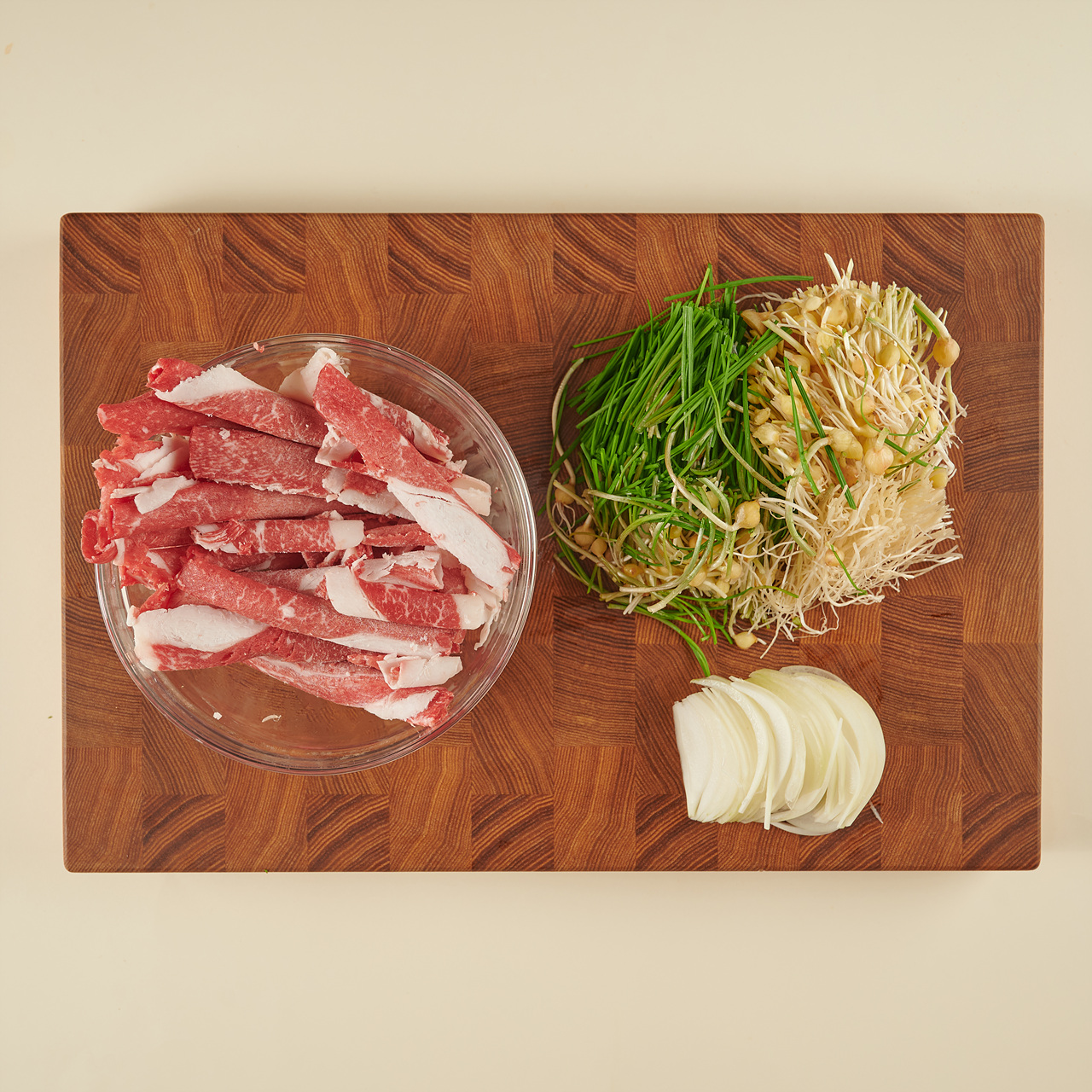 냄비에 물(2L)을 넣어 센불로 끓인 후, 물이 끓어오르면 차돌박이를 넣고 30초 동안 데쳐 건져내 주세요. 흐르는 찬물에 헹군 후, 체에 밭쳐서 물기를 빼주세요.