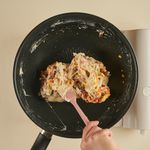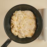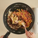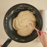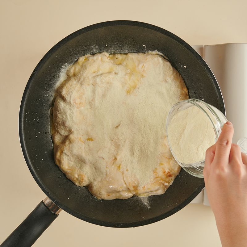 팬의 불을 끈 후, 탈지분유를 넣어 골고루 섞어주세요.
