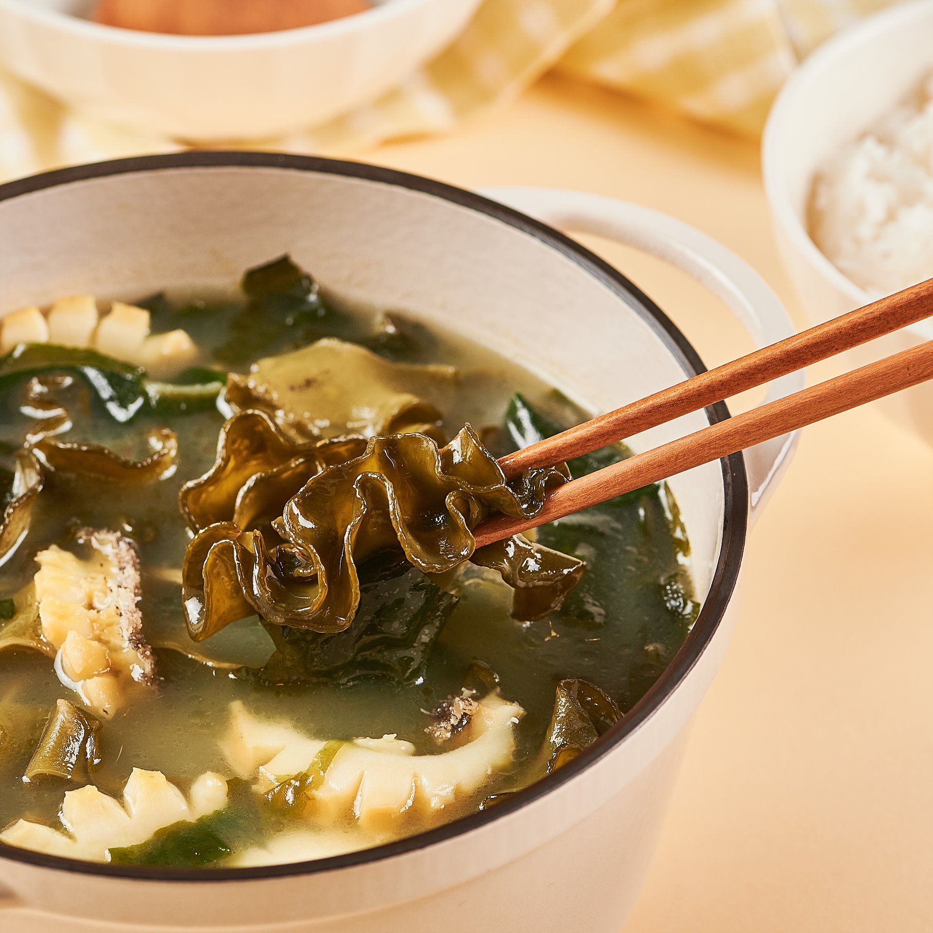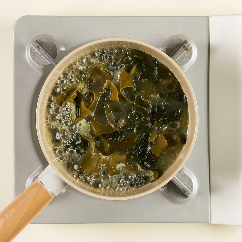 진득한 국물과 오독오독 신기한 식감이 매력적인미역귀 미역국원하는 부재료를 더해주면 보양건강식 완성!