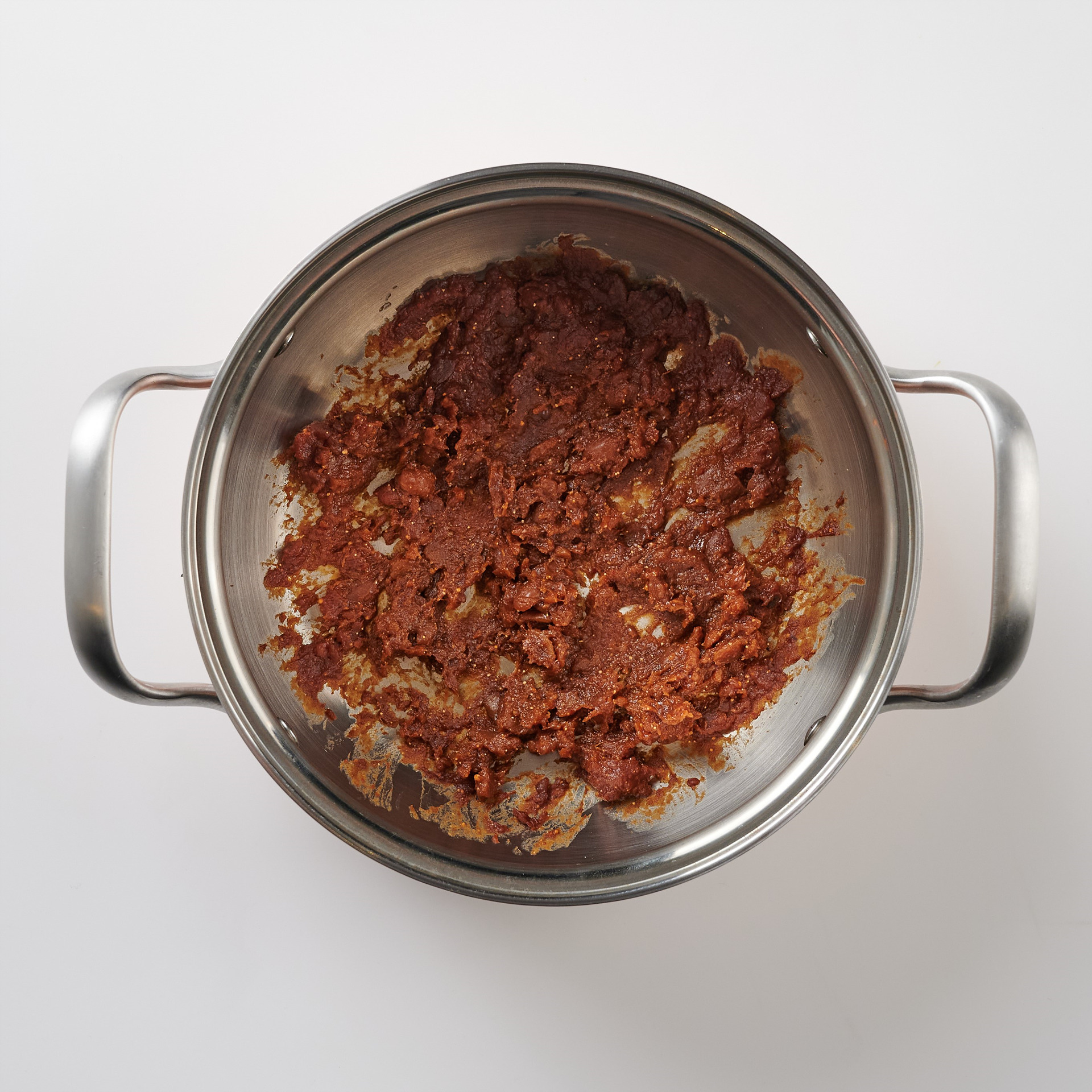 냄비에 토장을 넣고, 약한 불에 타지 않게 볶다가 물을 조금씩 넣어 끓여주세요.