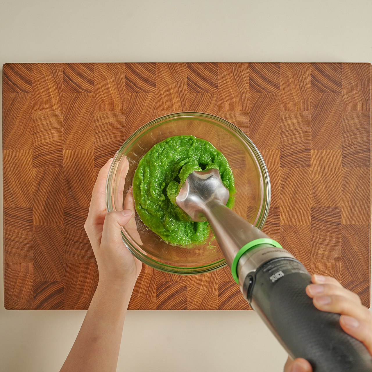 다 익은 완두콩을 믹서(혹은 핸드블랜더)로 곱게 갈아주면 완성!