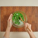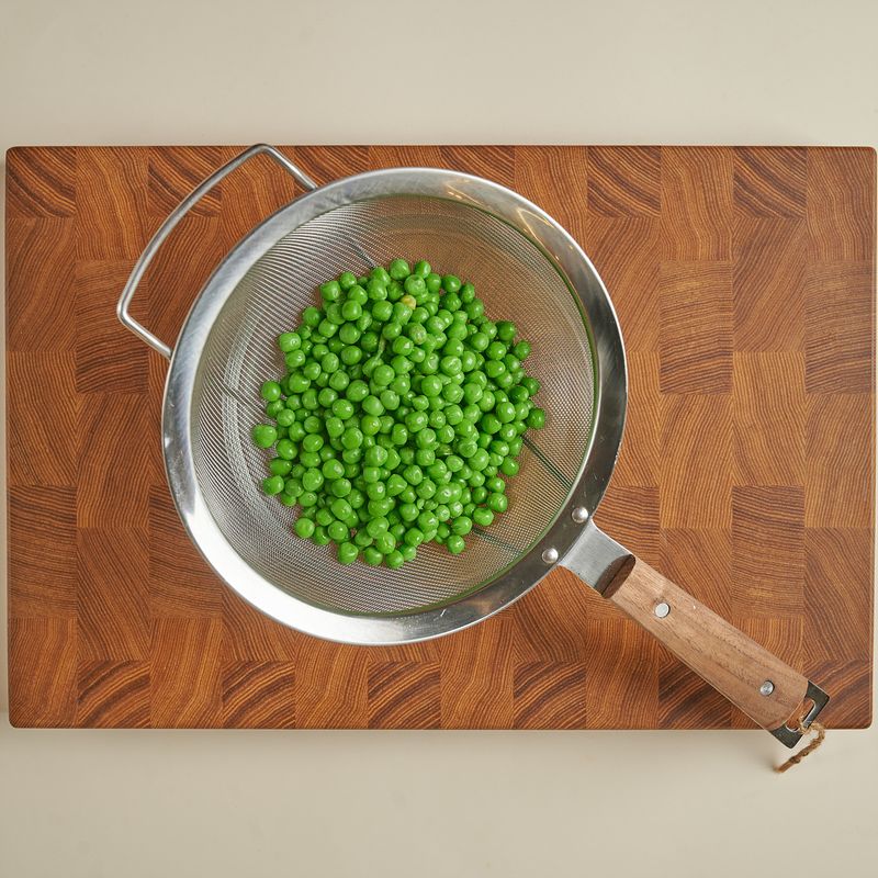 캔에서 꺼낸 완두콩은 체에 밭쳐 흐르는 물에 씻어 물기를 제거하고 내열용기에 담아주세요.