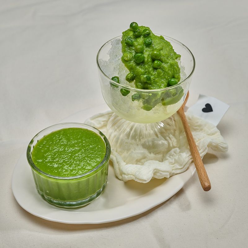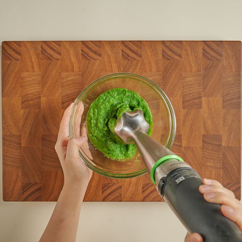다 익은 완두콩을 믹서기 혹은 핸드 믹서로 곱게 갈아주면 완성!