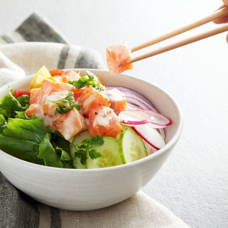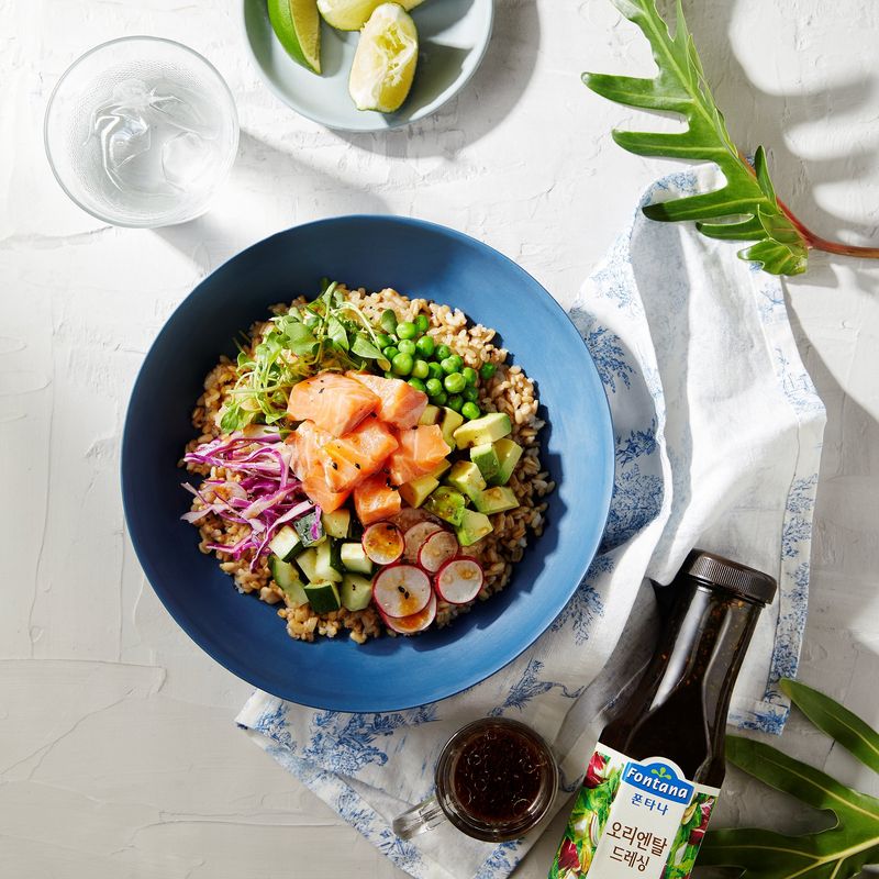 드레싱에 버무린 연어나 참치를 곁들여 먹으면 건강 가득!
