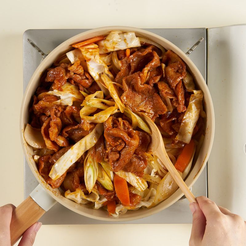 고추장 양념에 돼지고기 주물주물 버무리면 완성!