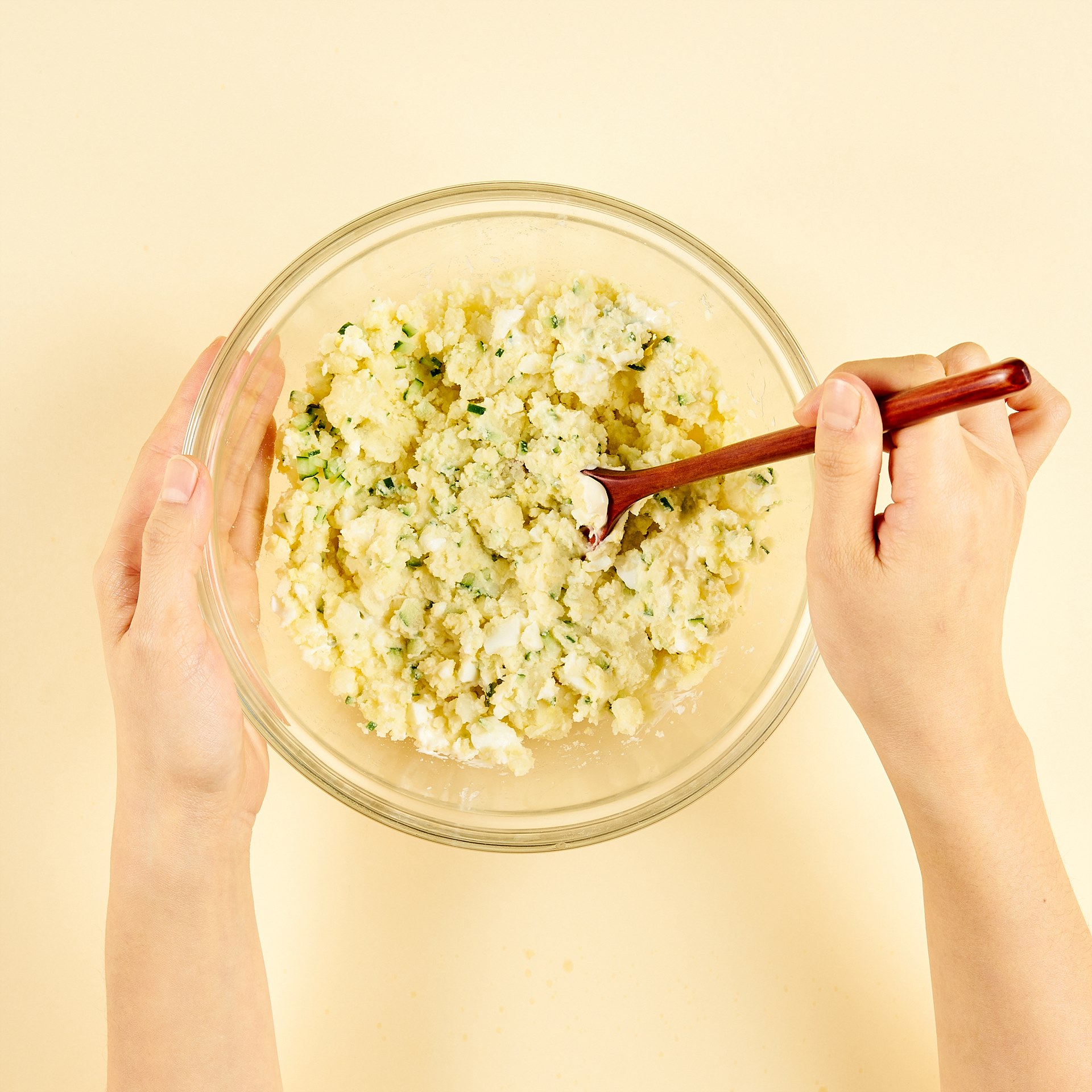 취향껏 아삭한 채소와 마요네즈에 버무려주면 완성!