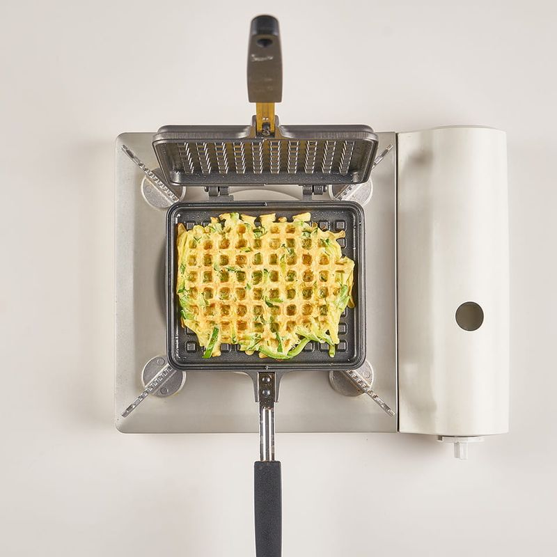 와플팬에 재료 넣고 노릇노릇 구워내면 끝!