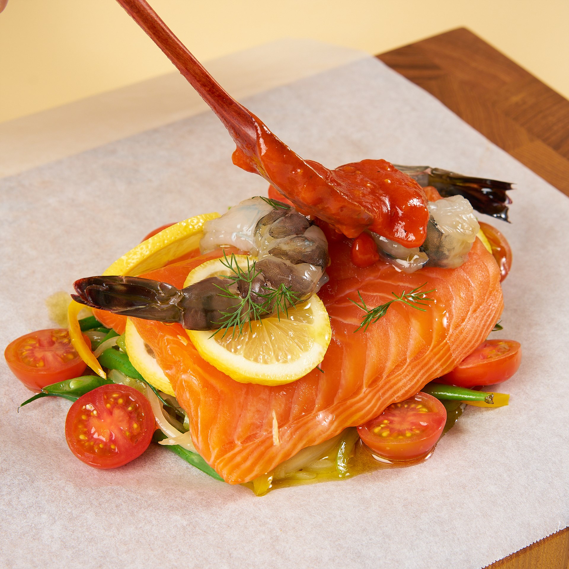 종이 호일에 연어와 좋아하는 재료 모두 넣고