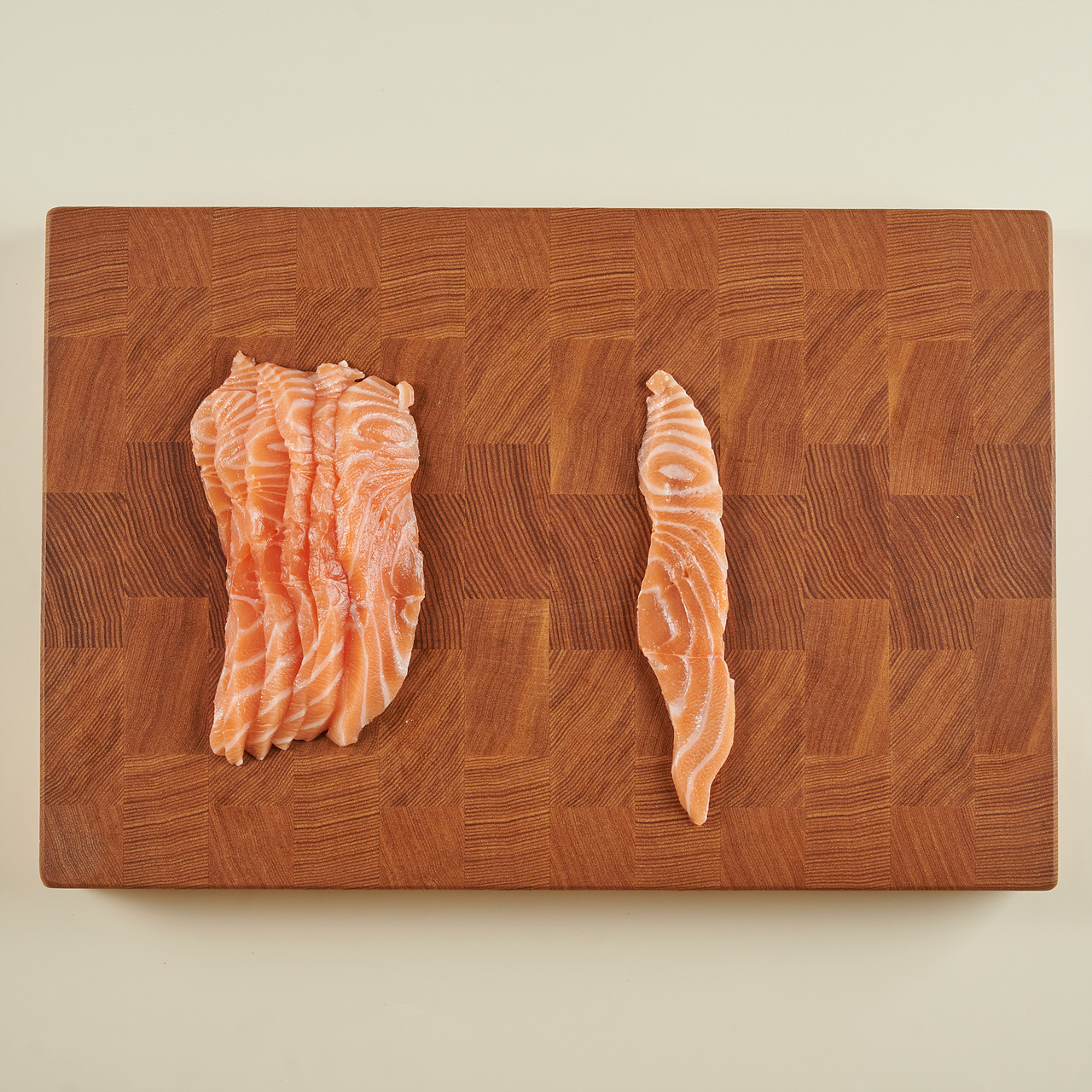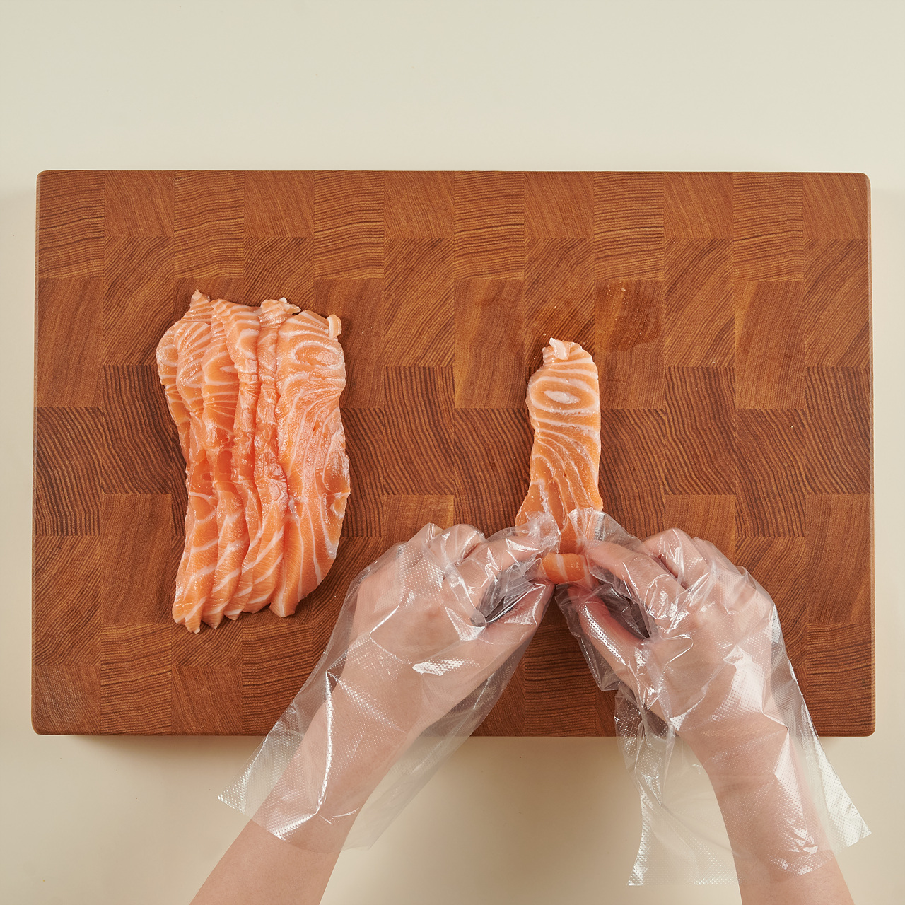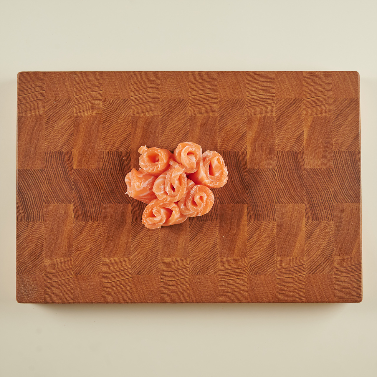 연어는 1cm 두께로 슬라이스 해주고, 꽃 모양이 되도록 돌돌 말아주세요.