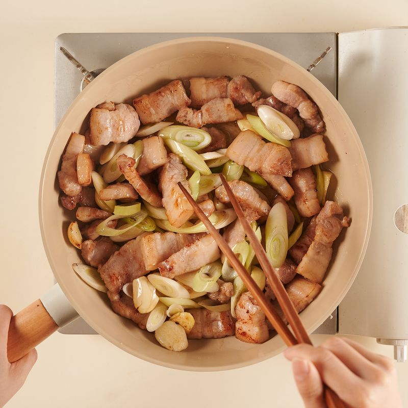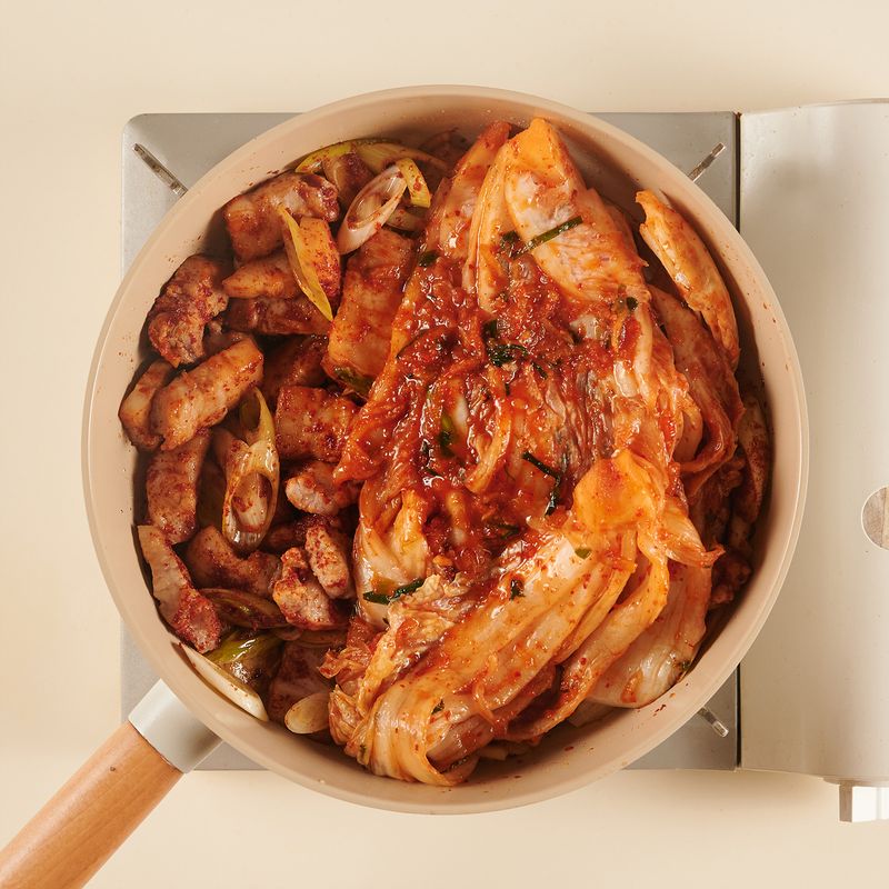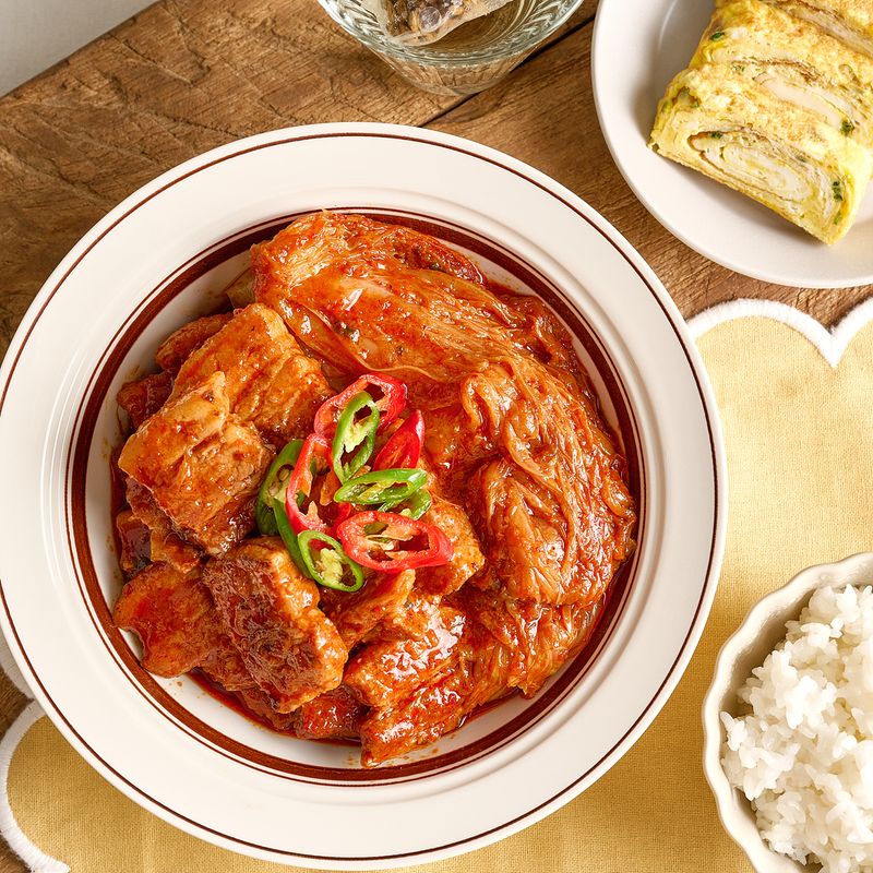 구이용 삼겹살로 어렵지 않게 만드는 돼지고기 김치찜.