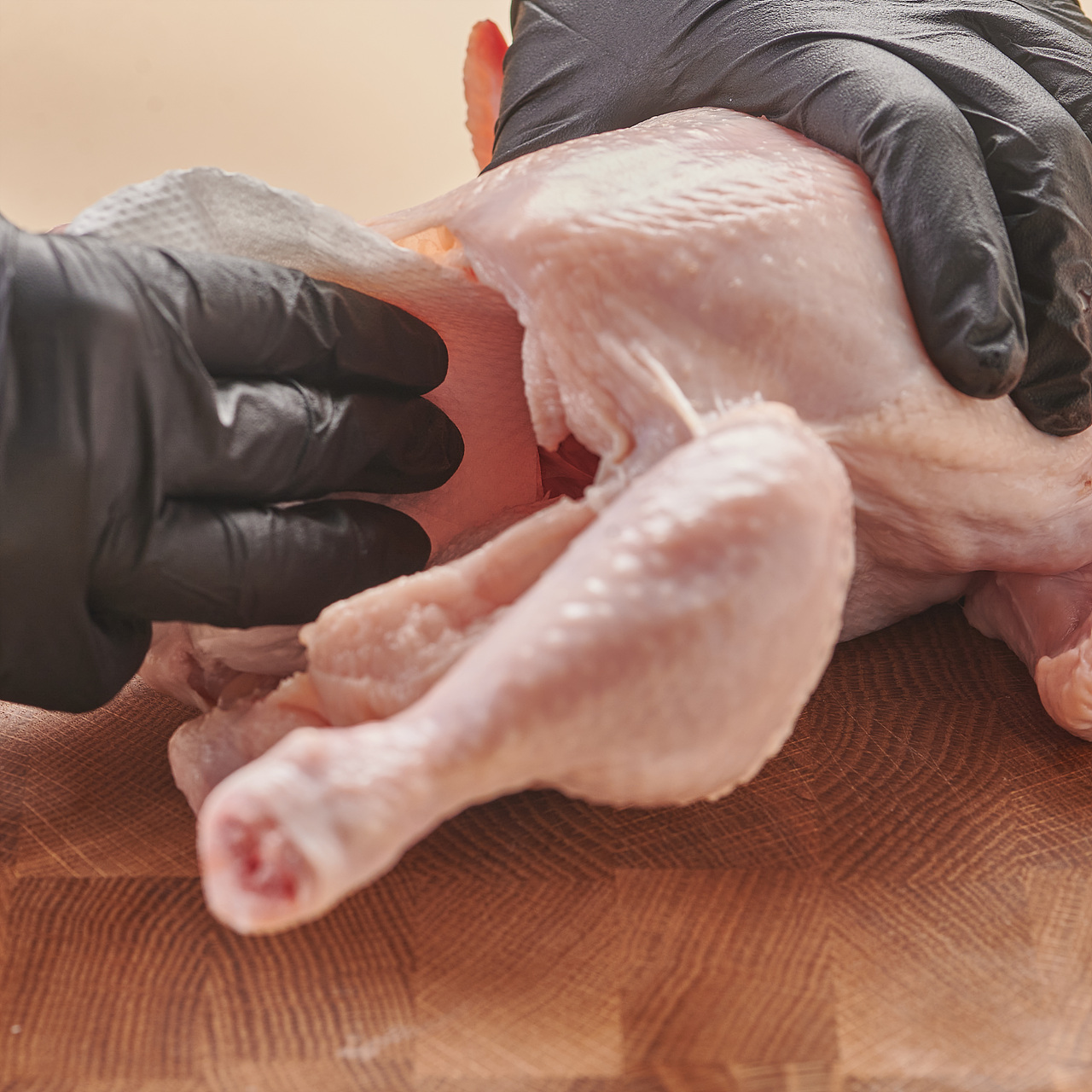 닭고기(600g)는 뱃속을 키친타올로 닦아 핏물을 제거해 주세요.