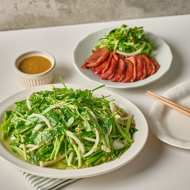 겨자맛 냉채소스와 미나리의 만남!